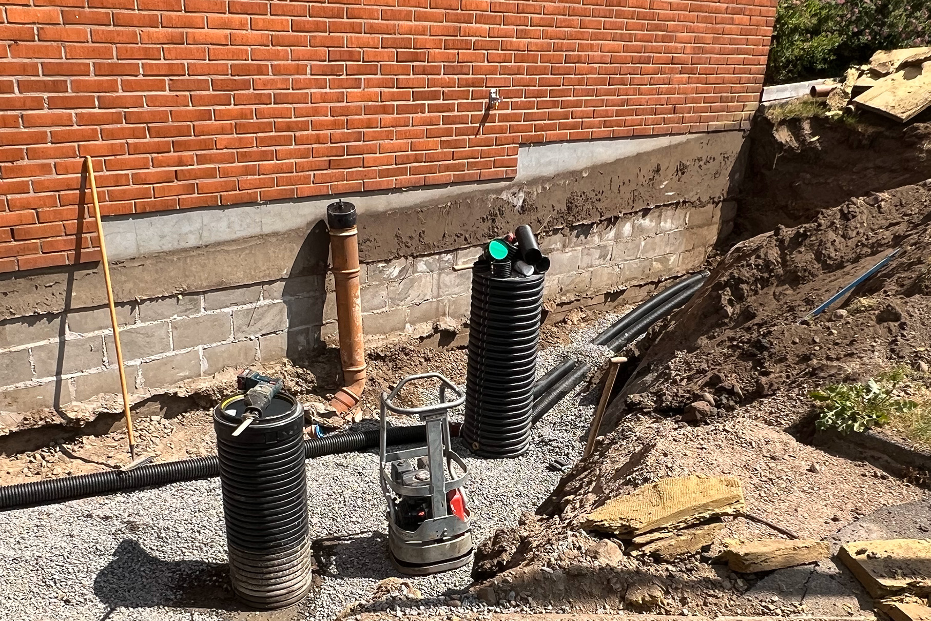 Marken runt ditt hus utsätter grunden för konstant fuktpåverkan. En effektiv dränering är nödvändig för att förhindra fuktskador. Vid dränering gräver vi runt grunden, inspekterar och reparerar eventuella skador, isolerar, och lägger dräneringsrör. Behöver du hjälp att komma igång, eller funderar du över offert? Välkommen att kontakta oss.